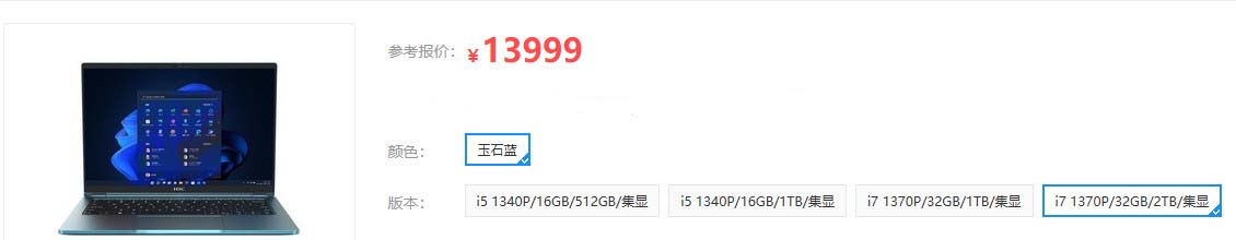 在消费级市场中,i7-1370P和i5-1340P通常不会单独零售,而是集成在笔记本电脑中,如果我们要参考价格的话,我们可以参考搭载这两款处理器的笔记本电脑,以新华三H3CBook Ultra 14T G2为例:
